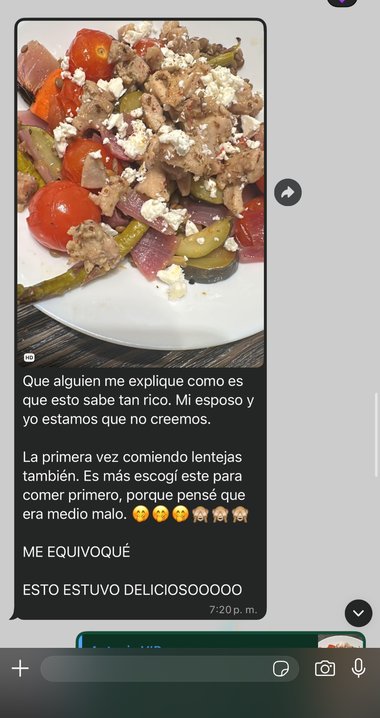 "Escogí comer el plato con lentejas primero porque pensé que estaría medio malo. ME EQUIVOQUÉ. ESTO ESTUVO DELICIOSOOOO."